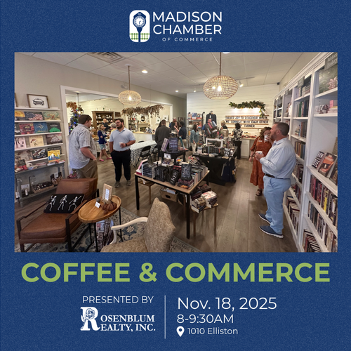 The Madison Chamber Coffee & Commerce networking series provides opportunities for members to attend a morning event filled with coffee, conversation and camaraderie. Network and socialize in a relaxed setting with other business professionals. This event brings co-workers, friends and local businesses together to create a lively atmosphere with attendees from all walks of life and industries. This event is free for members to attend!