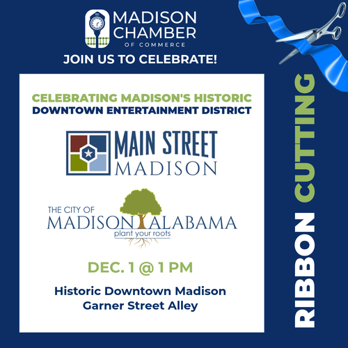 Join us as we celebrate the ribbon cutting for Madison's newly designated Historic Downtown Entertainment District! This milestone strengthens economic activity, supports local businesses, and enhances the vibrancy of our historic downtown. Come be part of this exciting step forward for our community.