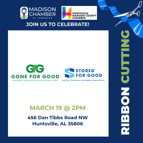 Join us for a dual ribbon cutting celebrating Gone for Good and Stored for Good! Gone for good provides AAA NAID Certified document destruction and hard drive shredding, while Stored for Good offers secure physical and digital document storage and scanning solutions. Together, these mission-driven nonprofits protect sensitive information while creating meaningful employment opportunities for adults with disabilities. Come help us celebrate their impact in our community!